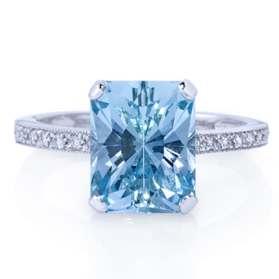 Most faceted aquamarines are free of eye-visible inclusions. Collectors generally expect clean gems with good transparency. There is a trend today to use included, but good-color aquamarines as unique centerpieces for jewelry articles or even as partially polished crystal slices or nuggets in necklaces. (Photo courtesy of Greenwich Jewelrys)